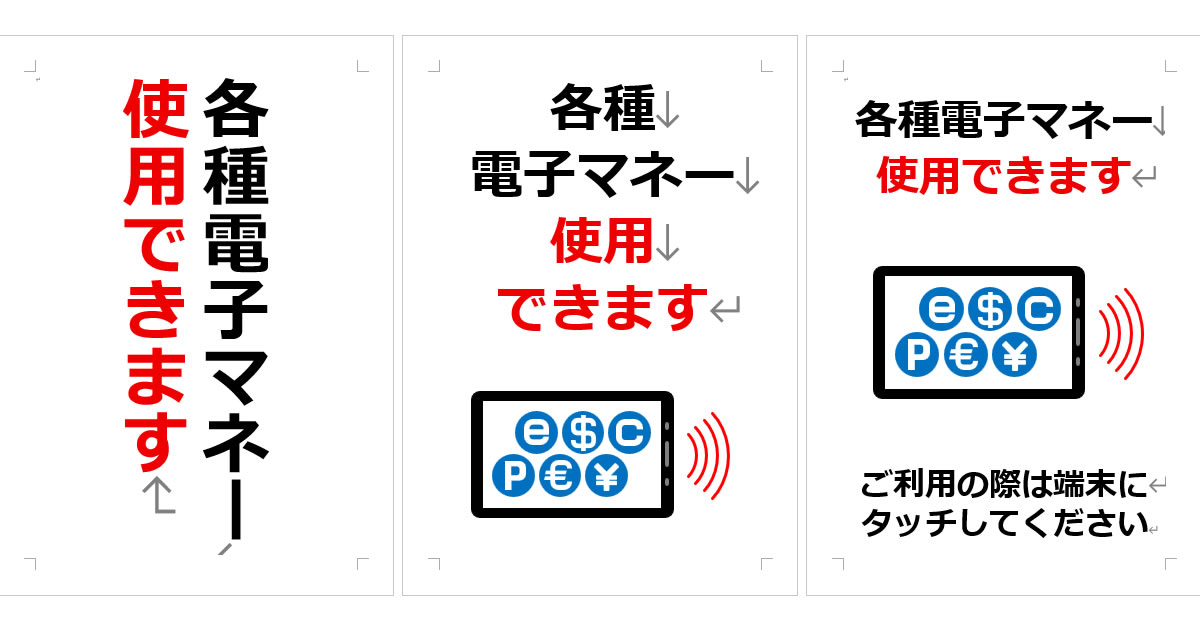 各種電子マネー使用できますの張り紙をダウンロード(Office Word形式)