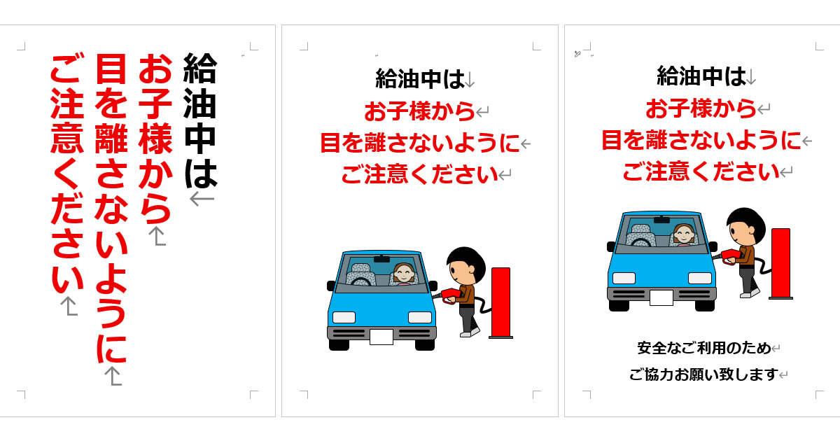 給油中はお子様から目を離さないようにご注意くださいの張り紙をダウンロード(Office Word形式)