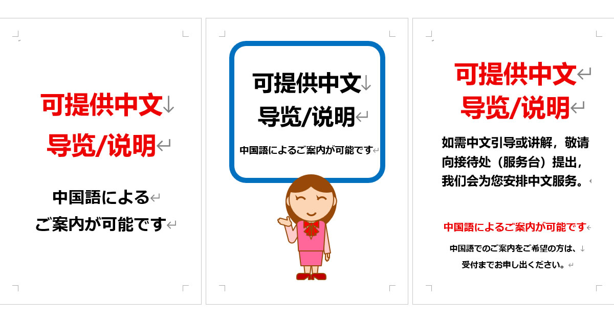 中国語によるご案内が可能ですの張り紙をダウンロード(Office Word形式)
