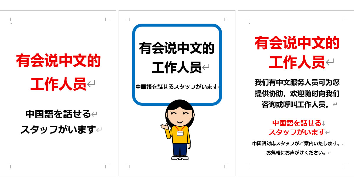 中国語を話せるスタッフがいますの張り紙(Office Word/PDF形式)
