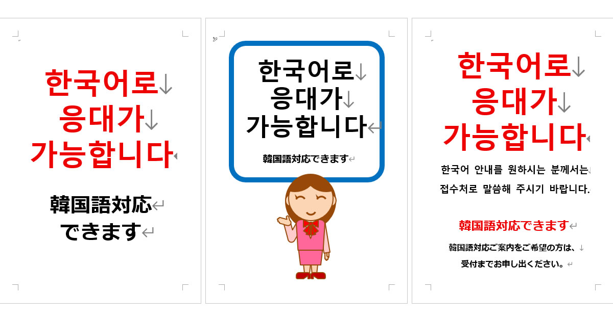 韓国語対応できますの張り紙をダウンロード(Office Word形式)