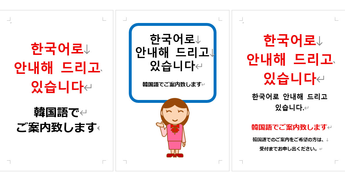 韓国語でご案内いたしますの張り紙をダウンロード(Office Word形式)
